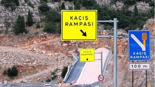 Açıklama: Kaçış rampaları, özellikle fren sistemlerinin arızalandığı veya bozulduğu durumlarda, araçların hızlarını kontrol altına alarak güvenli bir şekilde durmalarını sağlamak amacıyla tasarlanır. Bu rampalar, genellikle yüksek hızla gelen araçlar için güvenlik önlemi olarak kullanılır.