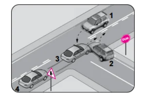 22 Nisan 2026 Ehliyet Sınav Soruları Aşağıya inerek sınavı çözebilirsiniz. Başarılar /50 45 dakika süreniz var Ehliyet E-Sınav Çocuklarda yapılan temel yaşam desteği uygulamasında, göğüs kemiği kaç cm aşağı inecek şekilde kalp basısı uygulanır? A) 2 B) 5 C) 8 D) 11 Aşağıdakilerden hangisi, kazazedeye şok pozisyonu verilirken izlenmesi gereken işlem basamaklarındandır? A) Bacaklarının altına çarşaf, battaniye, yastık,kıvrılmış giysi vb. destek konulması B) Yaşam bulgularından, sadece nabzının değerlendirilmesi C) Vücuduna soğuk uygulama yapılması D) Düz olarak yüzüstü yatırılması Aracın gösterge panelinde bulunan şekildeki ikaz ışığının, motor çalışmaya başladığında ya da seyir sırasında yanıyor olması sürücüye neyi bildirir? A) Motor kaputunun açık kaldığını B) Motor yağı basıncının çok düştüğünü C) Motor soğutma suyu sisteminde bir arıza olduğunu D) Fren sisteminde hidrolik seviye düşüşü veya bir arıza olduğunu -Doğrultu değiştirme manevralarını yanlış yapmak-Önde giden bir aracı güvenli ve yeterli mesafeden izlememek Yukarıda verilenler, trafik kazalarında rol oynayan faktörlerin hangisinin içinde değerlendirilir? A) Araç kusurları B) Yaya kusurları C) Yolcu kusurları D) Sürücü kusurları Aşağıdakilerden hangisi, delici karın yaralanmalarında yapılan doğru ilk yardım uygulamalarındandır? A) Ağızdan yiyecek ya da içecek verilmesi B) Dışarı çıkan organların içeri sokulmaya çalışılması C) Isı kaybını önlemek için kazazedeye soğuk uygulama yapılması D) Kazazedenin bilinci yerindeyse sırtüstü pozisyonda bacaklar bükülmüş olarak yatırılması Aşağıdaki trafik işaretlerinden hangisi, kamyonlar için öndeki aracı geçme yasağını bildirir? A) . B) . C) . D) . Araçların yüklenmesine ilişkin usullere göre yolcu ve eşya taşımalarında kullanılan araçların, her yılın 1 Aralık ile 1 Nisan tarihleri arasında aşağıdakilerden hangisini kullanması zorunludur? A) Kış lastiği B) Yaz lastiği C) Polen filtresi D) Cam suyu antifrizi “Sürücü belgesi, sürücünün işlemiş olduğu kusura göre belirli bir süreliğine trafik zabıtalarınca geri alınır.” Buna göre aşağıdakilerden hangisi, sürücü belgesinin geri alınmasını gerektiren kusurlardan biri değildir? A) Ölümlü kazalarda asli kusurlu olmak B) Uyuşturucu veya uyarıcı madde kullanmak C) Trafik işaretiyle belirlenmiş hız sınırını %10 oranında geçmek D) Kanunda belirtilen miktarın üzerinde alkollü olarak araç kullanmak Şekildeki kazada hangi numaralı araç sürücüsü asli kusurlu sayılır? A) 1 B) 2 C) 3 D) 4 Aşağıdakilerden hangisi öfke yönetiminin amaçlarındandır? A) Öfkeyi bastırmak ya da yok etmek B) Kızgınlığa yol açan olayları değiştirmek C) İnsanlar ya da olaylar karşısında gösterilen içsel ve dışsal tepkilerde kontrolsüz davranılmasını sağlamak D) Kızgınlığın ya da öfkenin yol açtığı duygusal ve fizyolojik tepkileri azaltmak Şekilde gösterilen lastiğin üretim tarihi nedir? A) 2003 yılının 5.nci günü. B) 2003 yılının 5.nci haftası. C) 2005 yılının 3.ncü haftası D) Tarih gözükmüyor Aşağıdakilerden hangisi frenleme mesafesinin artmasına neden olur? A) Yakıt seviyesinin düşmesi B) Balata yüzeyinin kuru olması C) Lastik diş derinliklerinin azalması D) Motor yağı değişiminin geciktirilmesi I. Kazazedenin tedavi edilmesiII. Hayati tehlikenin ortadan kaldırılmasıIII. Yaşamsal fonksiyonların sürdürülmesinin sağlanması Yukarıdakilerden hangileri ilk yardımın öncelikli amaçlarındandır? A) I, II ve III. B) II ve III. C) I ve III. D) I ve II. Çarpma ya da düşme sonucu kemik bütünlüğünün bozulmasına ne ad verilir? A) Kırık B) Çıkık C) Zorlama D) Burkulma Şekildeki trafik işareti aşağıdakilerden hangisine yaklaşıldığını bildirir? A) Demir yolu alt geçidine B) Demir yolu üst geçidine C) Kontrollü demir yolu geçidine D) Kontrolsüz demir yolu geçidine Ticari amaçlı yük veya yolcu taşımacılığında kullanılan araç resimleri verilmiştir. Bu araçlardan hangilerini şehirler arasında kullanan bir şoförün 24 saat süre içerisinde; devamlı olarak 4,5 saatten fazla sürmesi yasaktır? A) Yalnız 1 B) 1 ve 2 C) 2 ve 3 D) 1, 2 ve 3 Aşağıdakilerden hangisi motorla vites kutusu arasındaki irtibatı keserek, vites değiştirme imkânı sağlayan güç aktarma organıdır? A) Amortisör B) Helezon yay C) Fren balatası D) Kavrama (Debriyaj) Işıklı trafik işaret cihazında yanan hangi ışık, dur işaret levhası anlamında olup gidilecek yolun açık olduğu görüldükten sonra yeniden hareket edilmesini bildirir? A) Fasılalı olarak yanıp sönen kırmızı ışık B) Fasılalı olarak yanıp sönen sarı ışık C) Yaya figürlü yeşil ışık D) Kırmızı oklu ışık Görsele göre, hangisinin yapılması doğru olur? A) Her iki araçta yoluna devam edebilir B) Sadece beyaz araç yoluna devam edebilir C) Sadece kırmızı araç yoluna devam edebilir D) Her iki araçta beklemelidir Şekilde soru işareti (?) ile gösterilen ve diferansiyelden aldığı hareketi tekerleklere ileten güç aktarma organının adı nedir? A) Volan B) Aks C) Kavrama D) Vites kutusu Şekildeki trafik işareti aşağıdakilerden hangisine yaklaşıldığını bildirir? A) Ana yol-tali yol kavşağına B) Işıklı işaret cihazına C) Açılan köprüye D) Havalimanına Taşıt yolu üzerine çizilen şekildeki yatay işaretlemenin anlamı nedir? A) Bisiklet yolu B) Motosiklet yolu C) Bisiklet giremez D) Motorlu bisiklet yolu Koruma başlığı ve koruma gözlüğünün hangi araç sürücüsü tarafından kullanılması zorunludur? A) Otobüs B) Traktör C) Motosiklet D) Kamyon Aşağıdaki trafik işaretlerinden hangisi kontrolsüz demir yolu geçidine yaklaşıldığını bildirir? A) . B) .