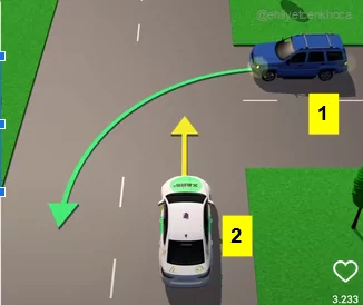 29 Nisan 2026 Ehliyet Sınav Soruları Aşağıya inerek sınavı çözebilirsiniz. Başarılar /50 45 dakika süreniz var Ehliyet E-Sınav https://indir.ehliyetsorulari.net/animasyon1/lv_0_20230831170547.mp4 Bu durumda kalırsak neden durmalıyız?l. yol ver işareti yüzündenll. Bisiklet yolu ve geçen bisikletli yüzündenlll. Sarı kamyon yüzünden A) Yalnız l B) l ve ll C) Yalnız ll D) Hepsi Akciğerler vücudumuzdaki hangi sistemde yer alır? A) Sinir sisteminde B) Hareket sisteminde C) Solunum sisteminde D) Boşaltım sisteminde Motorlu bisiklet, motosiklet ve sürücüleri ile ilgili olarak aşağıdakilerden hangisinin yapılması yasaktır? A) Gidiş yönüne göre yolun en sağından seyredilmesi B) İkiden fazlasının taşıt yolunun bir şeridinde yan yana sürülmesi C) Tehlikeli madde taşıyan araçların geçilmesi D) Geçme yaparken sinyal verilmesi • Gereksiz yere korna çalınması• Egzoz susturucularının orijinalliğinin bozulması• Araç camlarının açılarak yüksek sesle müzik dinlenilmesiVerilen davranışların yapılması aşağıdakilerden hangisine sebep olur? A) Yolculuğun huzurlu geçmesine B) Yolculuk süresinin kısalmasına C) Trafiğin hızlı akmasına D) Gürültü kirliliğine Marşa basıldığında motor dönüyor ancak çalışmıyorsa ilk olarak aşağıdakilerden hangisi kontrol edilmelidir? A) Bujiler B) Akü suyu C) Motor yağ seviyesi D) Depodaki yakıt seviyesi Görselde bebeklerde ilk yardım olarak uygulanan Heimlich manevrasının uygulama aşamaları karışık olarak verilmiştir.Buna göre, sıralamanın doğru olması için numaralanmış aşamalardan hangileri yer değiştirmelidir? A) I ve II B) I ve IV C) II ve III D) III ve IV https://i.ehliyetsorulari.net/v2023/2023-a1.mp4 I- Her durumda trafik ışıklarına yaklaşınca hızını azaltmalı ve dikkatli geçiş yapmalıdır.II- "Yeşilden sarıya" dönen trafik işaretini gördüğünde "kırmızı ışığın" yanması için beklemelidir.III- Güvenle duramayacak mesafedeyse geçişini tamamlamalıdır. Araç sürücüsü trafik ışığı "yeşilden-sarıya" döndüğü esnada devam etmiştir. Durum ile ilgili seçeneklerden hangileri söylenebilir. A) Yalnız I B) I ve II C) I ve III D) I,II ve III I. Vücudu sıkan giysiler gevşetilir.II. Sırtüstü yatırılarak ayakları kaldırılır.III. Kusma varsa mide içeriğini yutmaması için yarı oturur pozisyonda tutulur.IV. Solunum yolu açıklığı kontrol edilir ve açıklığın korunması sağlanır. Numaralanmış ifadelerden hangileri bayılmış olan kazazedeye yapılması gereken ilk yardım uygulamalarındandır? A) I ve IV B) II ve III C) I, III ve IV D) I, II, III ve IV Şekle göre hangi numaralı aracın sürücüsü hatalı davranmıştır? A) 1 B) 2 C) 3 D) 4 Aşağıdakilerden hangisi solunum sistemi organlarındandır? A) Böbrekler B) Pankreas C) Akciğerler D) Kalp Aşağıdakilerden hangisi aracı istenilen yöne sevk eder? A) Marş sistemi B) Yağlama sistemi C) Direksiyon sistemi D) Aydınlatma sistemi Görsele göre, hangisinin yapılması doğru olur? A) 1 numaralı aracın 2 numaralı araca geçme önceliği vermesi B) 2 numaralı aracın, 1 numaralı araca geçiş kolaylığı sağlamak için, solundaki şeride geçmesi C) 2 numaralı aracın, 1 numaralı araç geçtikten sonra sol şeride geçmesi D) 1 numaralı aracın, 2 numaralı aracı uyararak yavaşlatması Haritalarda gösterilen şekildeki işaret, aşağıdakilerden hangisine verilen yol numarasıdır? A) Uluslararası yol B) Devlet yolu C) Demir yolu D) Otoyol Trafik görevlisinin hangi hareketi sürücüler için "sağa yanaş ve dur" talimatını içerir? A) . B) . C) . D) . Şekildeki trafik işaretinin anlamı nedir? A) Gevşek şev B) Dönel kavşak C) Yandan rüzgâr D) Gizli buzlanma Aksine bir durum yoksa saatte 100 kilometre hızla seyreden bir sürücü, önündeki araca en fazla kaç metre yaklaşabilir? A) 20 B) 30 C) 40 D) 50 Aksine bir işaret bulunmadıkça yerleşim yeri içindeki kara yollarında, lastik tekerlekli traktörler için azami hız saatte kaç kilometredir? A) 10 B) 20 C) 30 D) 40 Aşağıdakilerden hangisi lastiklerin aşırı şişirilmesi sonucunda oluşabilir? A) Jantın eğilmesi B) Fren hidroliğinin azalması C) Sürüş konforunun azalması D) Bijon somunlarının gevşemesi Şekildeki kara yolu bölümünde sürücülerin aşağıdakilerden hangisini yapması doğrudur? A) Hızını azaltması B) Hız sınırını aşması C) Önündeki aracı geçmesi D) Takip mesafesini azaltması Sinyal verildiğinde, gösterge panelindeki sinyal lambası ikaz ışığı çok sık yanıp sönüyorsa sebebi ne olabilir? A) geri vites lambası arızalıdır B) sinyal lambalarından biri yanmıyordur C) fren lamabalarında arıza vardır D) far lambalarında arıza vardır Şekildeki araç sürücüsü hangi kurala uymuyor? A) Hız sınırı B) Araç geçme yasağı C) Park etme yasağı D) Sağa dönme yasağı Aşağıdakilerden hangisi "şok" belirtilerindendir? A) Deride kızarıklık olması B) Bilinç seviyesinin artması C) Vücut sıcaklığının artması D) Nabzın hızlı ve zayıf olması • Yangın tehlikesi• Patlama durumu• Solunum durması Yukarıdaki durumların olasılığı mevcut ise kazazede araçtan hangi yöntemle çıkarılır? A) Rentek manevrası B) Sırtta taşıma yöntemi C) İtfaiyeci yöntemi ile omuzda taşıma D) Ayak bileklerinden sürükleme yöntemi Aşağıdakilerden hangisi trafik kazası grubuna girer? A) Virajı alamayan aracın devrilmesi B) Kara yolunda park etmiş olan aracın yanması C) Kara yolunun doğal nedenlerle trafiğe kapanması D) Duran otomobil üzerine inşaat hâlindeki binadan tuğla düşmesi Kan şekeri düşmesinde ilkyardım nasıl olmalıdır? A) Hastaya ağızdan bir şey verilmez. B) Hastanın bilinci yerinde ve kusmuyorsa ağızdan şekerli içecekler verilir C) Hasta kusuyorsa ağızdan sıvı verilir D) Hiçbiri Kanama, kalp atı